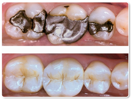 طب الأسنان التجميلي تبييض اللثة (إزالة التصبغ) يستفيد المرضى من تبييض اللثة والذي يستخدم تقنية ليزر لإزالة التصبغات الداكنة . استبدال الحشوات المعدنية التالفة إغلاق الفجوات يساعد الحشو المركب الأبيض على سد الفجوات بين الأسنان.